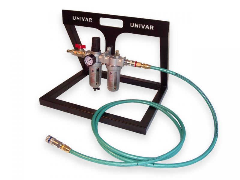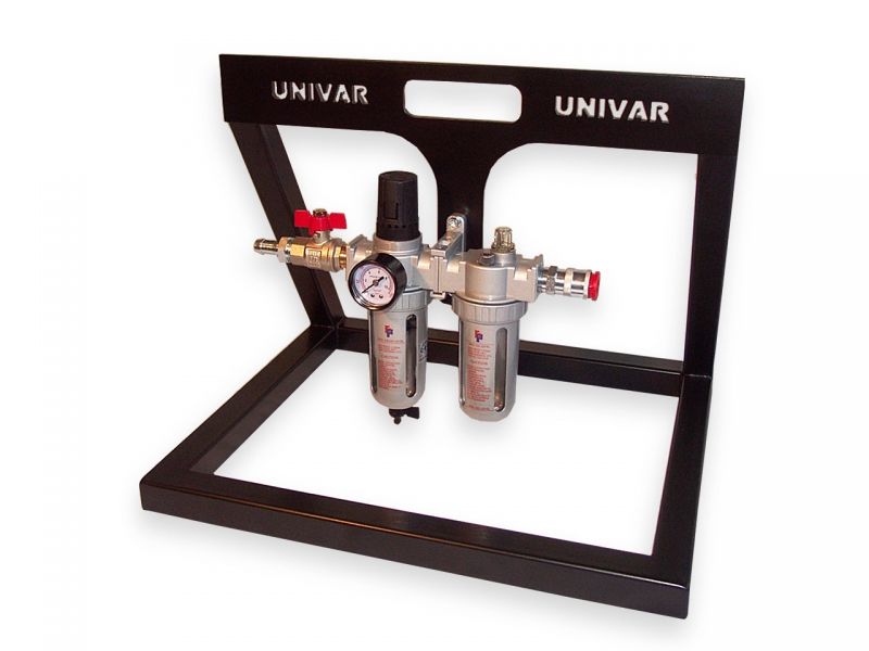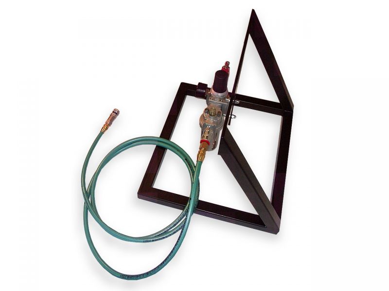 Stabilny stojak, który zapewnia bezpieczną pozycję dla zespołu uzdatniania powietrza chroniąc go uniemożliwiając uszkodzenie w przypadku przewrócenia podczas pracy